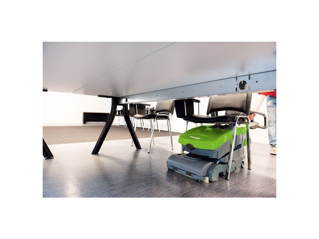- Obratnější než jiné mycí stroje: Pohodlné, nepřetržité čištění v úzkých místech díky nádrži na 7,5 litru čisté vody, velmi kompaktním rozměrům, řídítkům a řiditelným zadním kolům
